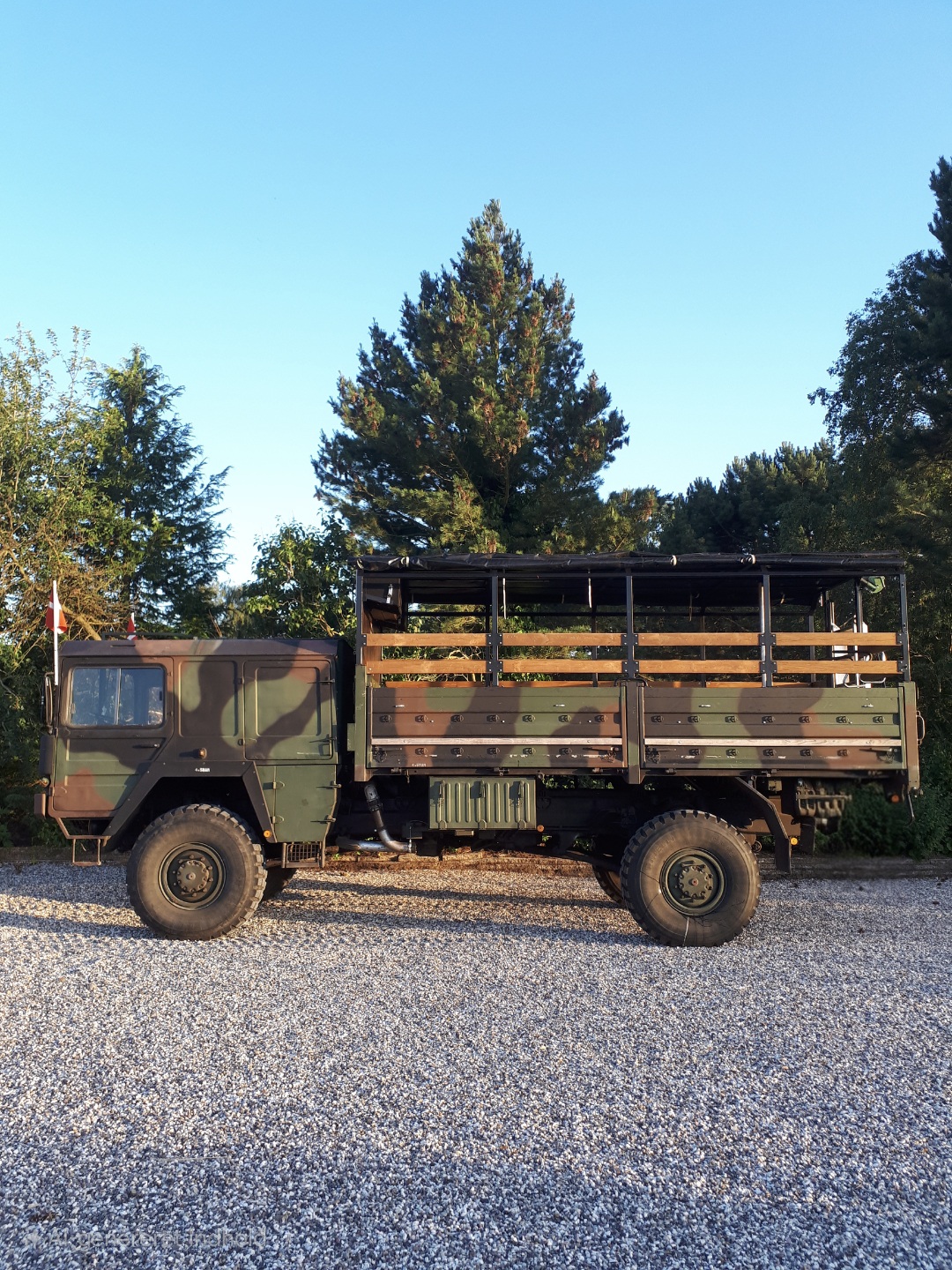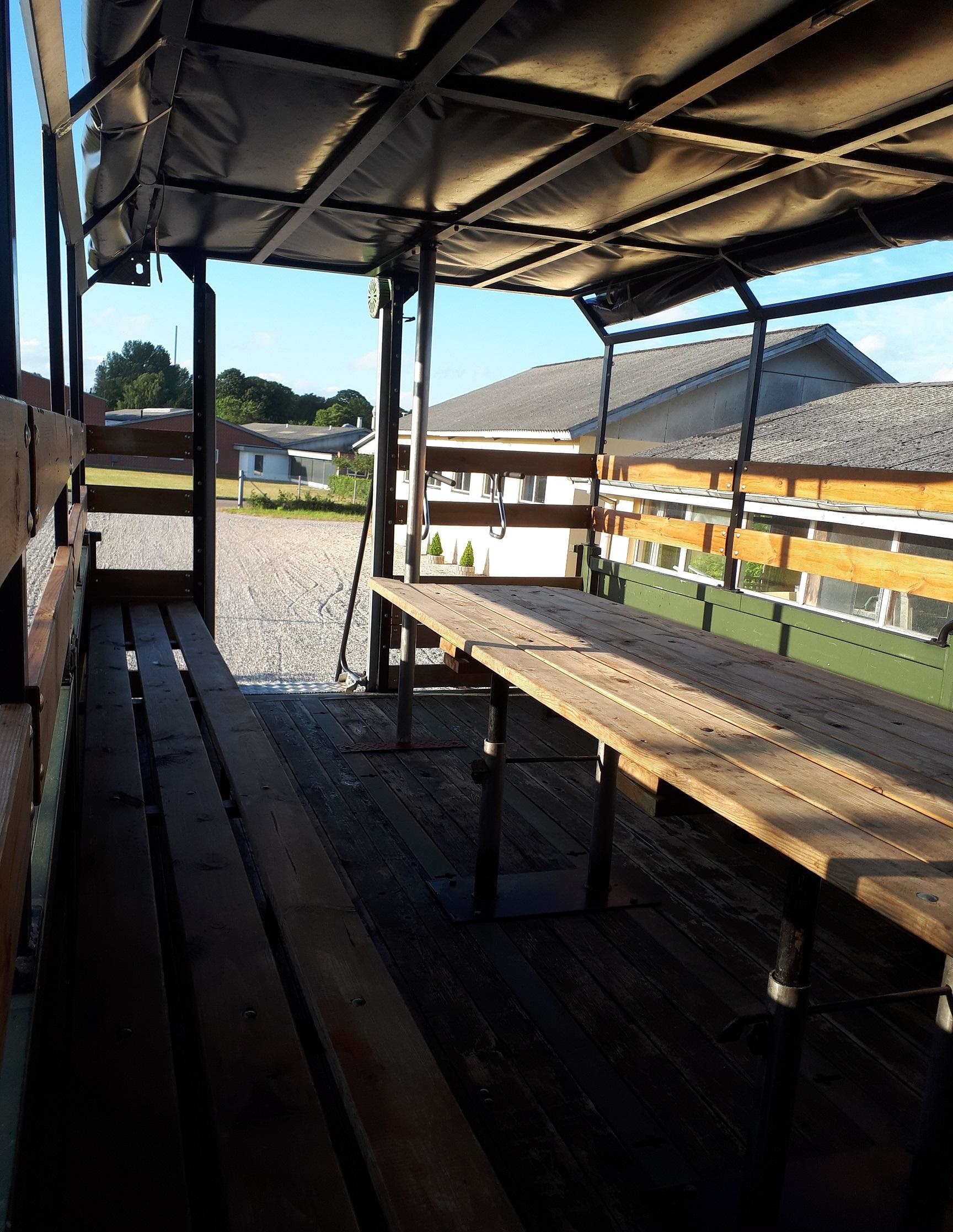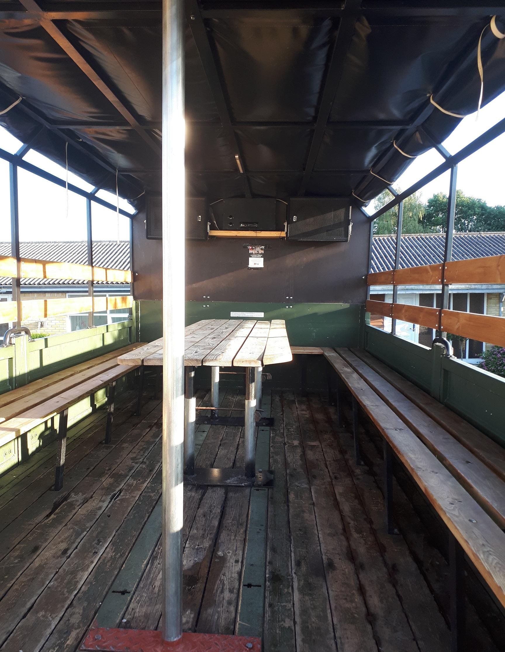 Udstyret med et bord/bænk på midten af ladet, stripperstang, skytteluge i førehuset og kan rumme op til 34 personer.