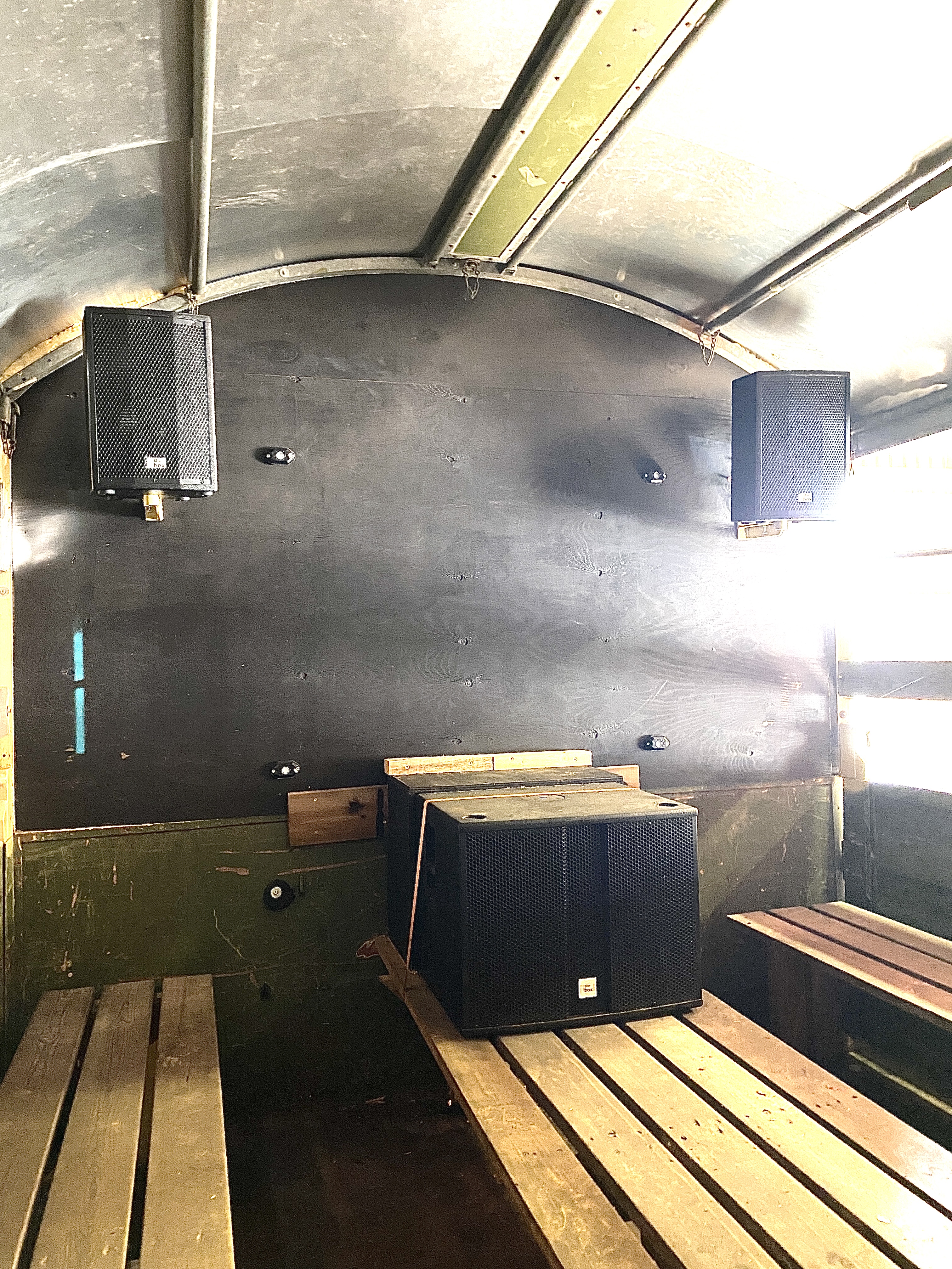 Bilen er udstyret med et stort musikanlæg til at give jer den bedste fest.