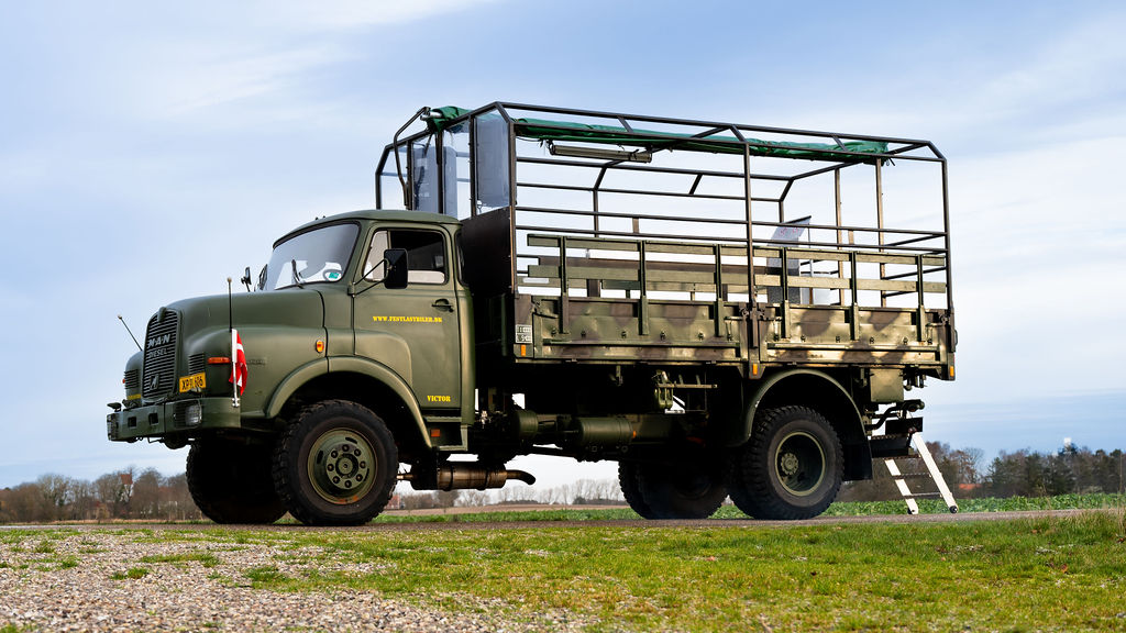 Vi har to typer lastbiler (Type 1 MAN og Type 2 Bedford). De er udstyret ens, men ser lidt forskellige ud. Dette er en type 1 MAN, som har en lidt længere front.