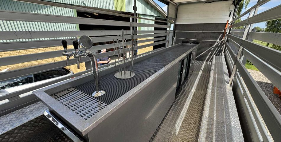 Stort bord med dræn og ”spildfang” så det hele ikke ”sejler”
